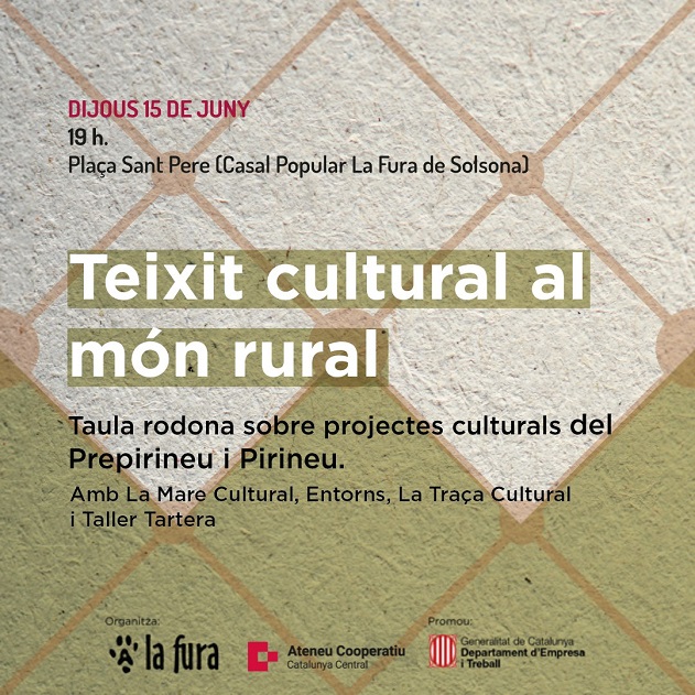 Debat al voltant de quin model cultural volem al món rural amb la participació de diferents projectes culturals del Prepirineu i Pirineu. Hi participaran La Mare Cultural de Solsona, l'espai de creació Entorns, el Taller de Creació Tartera i La Traça Cultural.